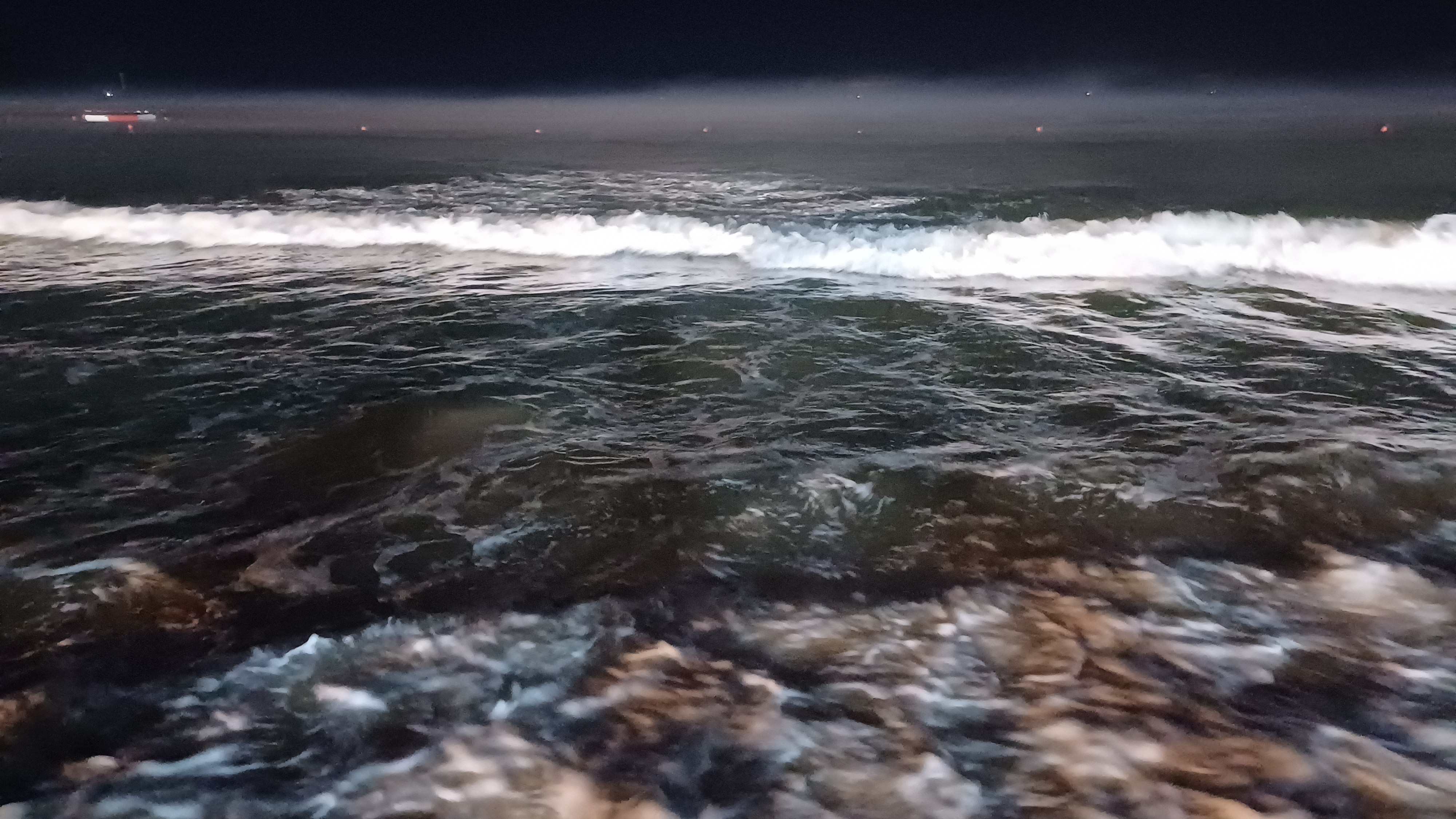 바다는 검었고 작은 배들은 실내 불빛에 스며들어 사진에